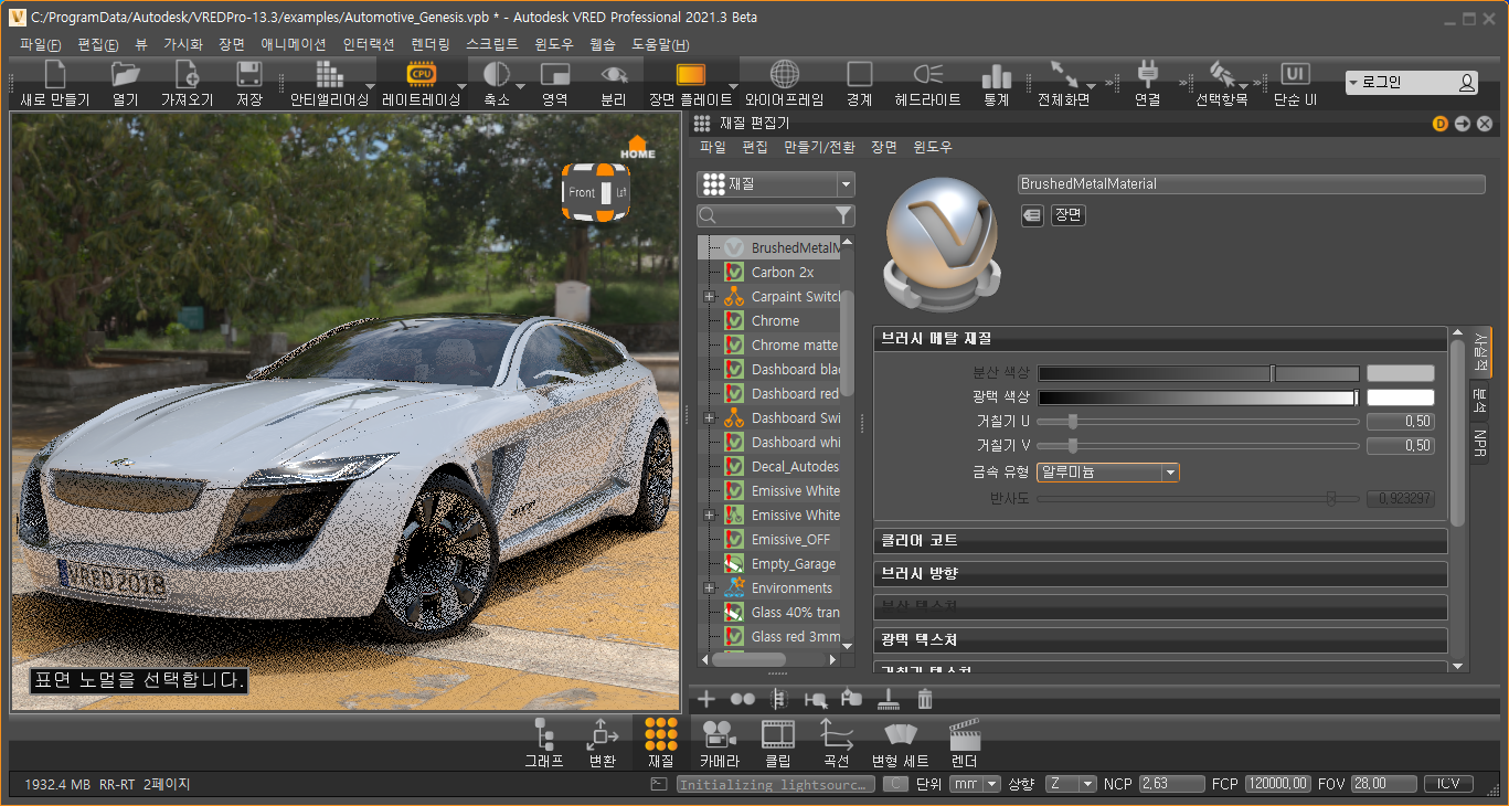 VRED의 브러시 메탈 재질에 대해 알아봅니다.