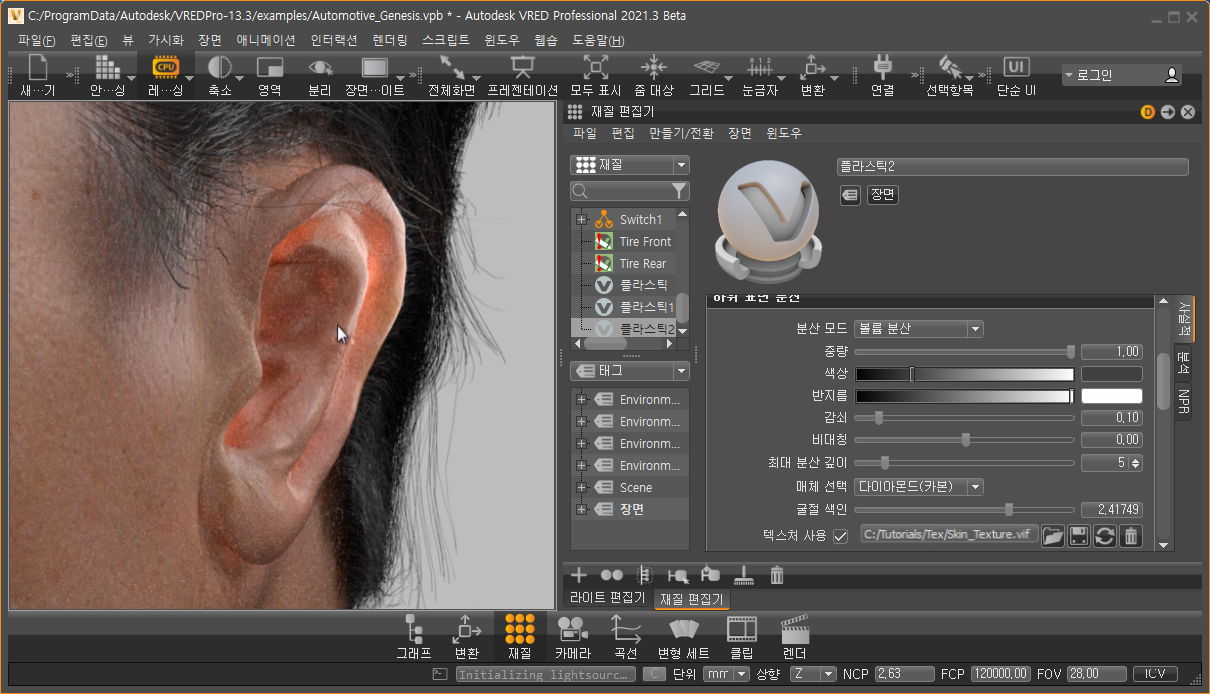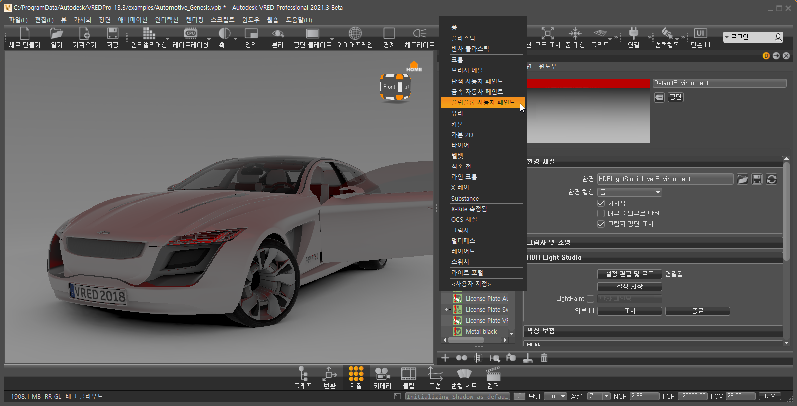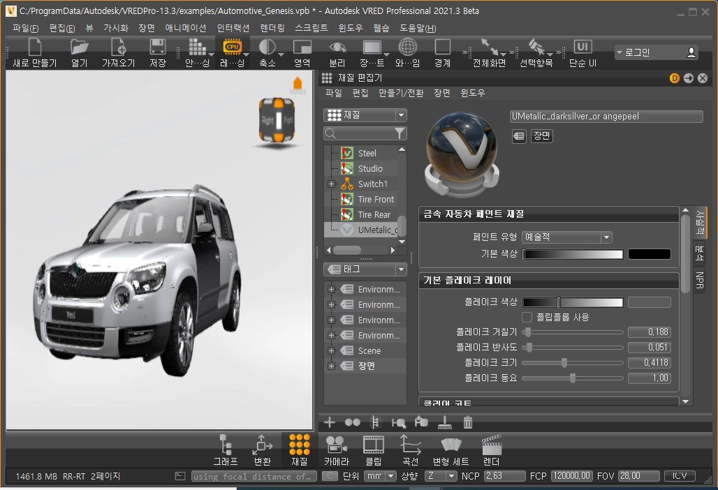VRED의 금속 자동차 페인트 재질에 대해 알아봅니다.