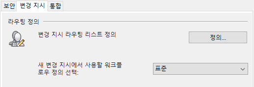 전역 설정 대화상자의 변경 지시 탭에서 라우팅 리스트 및 워크플로우 정의를 편집할 수 있습니다.