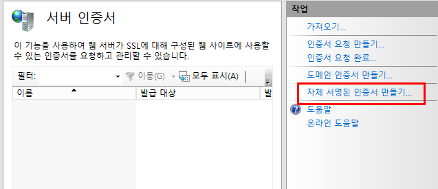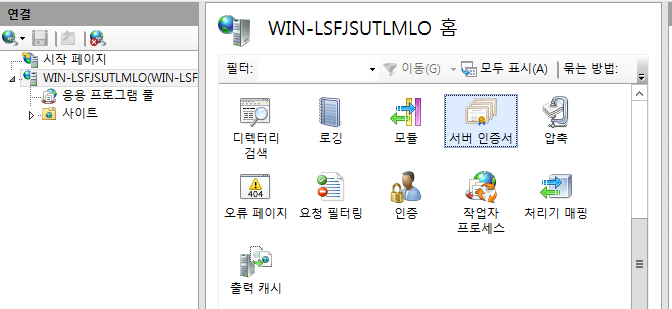 - 트리 뷰에서 서버 노드를 선택하고 리스트 뷰에서 서버 인증서 기능을 두 번 클릭합니다.