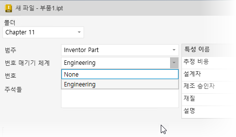 CAD 응용프로그램의 경우 범주 선택 필터와 상관없이 모든 파일을 번호 매기기 체계 "엔지니어링"으로 지정합니다.