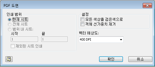 - 파일의 인쇄 범위, 화면표시 설정 또는 벡터 해상도를 사용자화하려면 옵션 버튼을 클릭합니다. 확인을 클릭합니다.