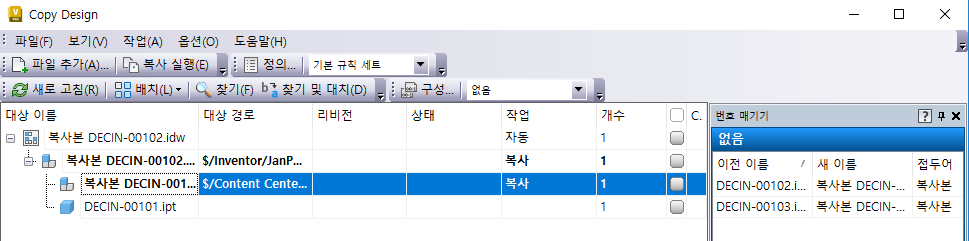 예를 들어 파일이 복사되도록 표시되어 있고 연관된 도면이 자동으로 표시된 경우, 복사 작업이 완료되면 도면에 동일한 새 파일 이름이 적용되고 도면이 위치를 연관된 파일로 저장합니다.