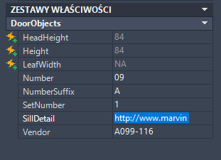 Procedura ta umożliwia wprowadzanie wartości dla właściwości ręcznych dla jednego lub większej liczby obiektów. Aby na przykład wprowadzić komentarz, który jest stosowany do kilku drzwi na rysunku, można wybrać drzwi i wprowadzić komentarz jako dane dla opcji Uwaga.