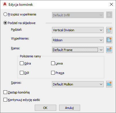 wybrać definicję szprosu dla siatki utworzonej po podzieleniu komórki na składowe | zaznacz żądaną definicję szprosu. |