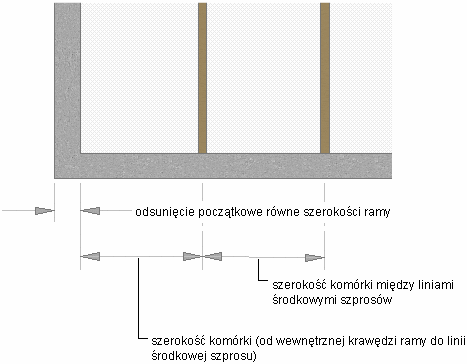 | punktem początkowym linii bazowej zestawu drzwi/okien a początkiem pierwszej komórki w siatce o podziale poziomym | wpisz wartość w polu Odsunięcie początkowe. |