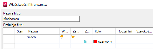 Ten filtr został nazwany Mechaniczny, a definicja filtru zawiera następujące kryteria: