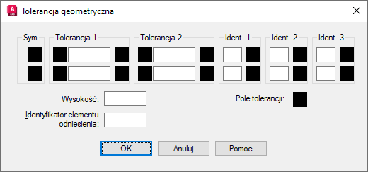 Po wybraniu charakterystycznych symboli geometrycznych zamykane jest okno dialogowe Tolerancja geometryczna i wyświetlany poniższy monit: