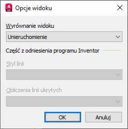 To okno dialogowe umożliwia określenie sposobu zaczepienia geometrii widoku i sposobu wyświetlania części z odniesieniami programu Inventor.