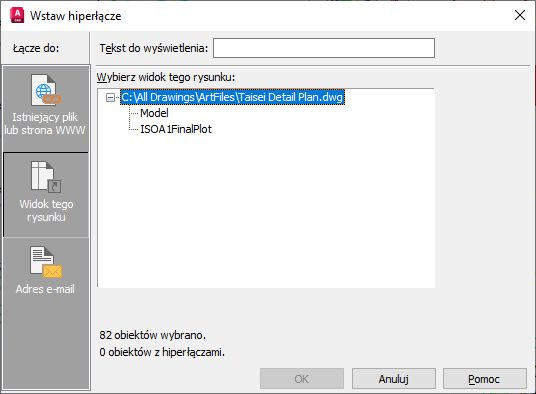 Otwiera okno dialogowe Wybierz miejsce w dokumencie umożliwiające wybranie nazwanego położenia na rysunku, dla którego ma zostać utworzone połączenie.