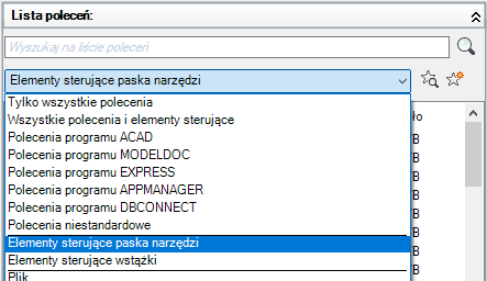 Na liście poleceń wyświetlana jest tylko lista elementów sterujących wstążki.