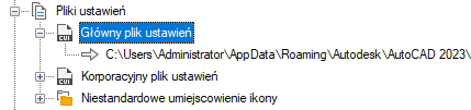 - W Eksploratorze plików wybierz <litera dysku>:\Users\<nazwa profilu użytkownika>\AppData\Roaming\Autodesk\<nazwa produktu>\<numer wersji>\<język>\support\<nazwa pliku adaptacji>.cuix.