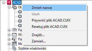 Uwaga: Resetować można tylko pliki CUIx znajdujące się w folderze UserDataCache w lokalizacji instalacji programu.
