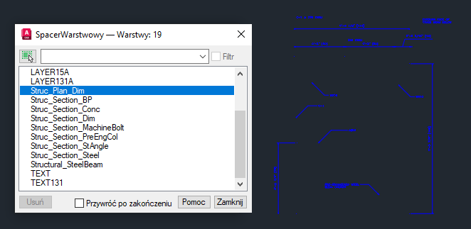 W oknie dialogowym SpacerWarstwowy wybierz z listy pozycję Struc_Plan_Dim.
