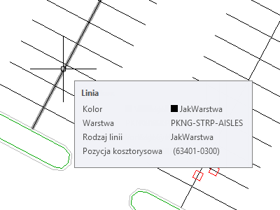 Na etykiecie narzędzi wyświetlane są opis i identyfikator pozycji kosztorysowej przypisanej do tego obiektu.