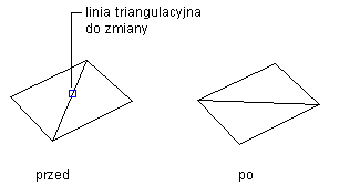 Zamiana krawędzi służy do zmiany kierunku trzech trójkątnych powierzchni na powierzchni w celu utworzenia dokładniejszego modelu powierzchni. Na przykład można zamienić krawędzie, aby dopasować krawędzie trójkąta do wypukłości lub zagłębień.