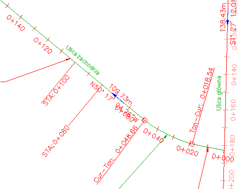 Styl etykiety zmienia się tylko dla etykiety pikiety 0+060. Pozostałe etykiety pikiety głównej na ulicy zachodniej zachowają swój styl.