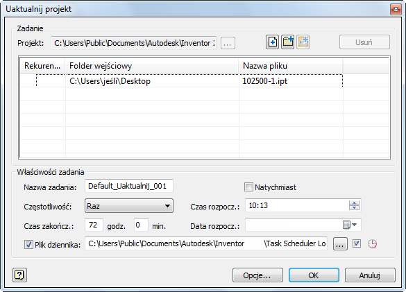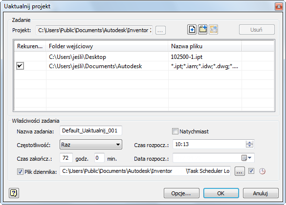 - Aby uruchomić Harmonogram zadań, program Autodesk Inventor musi mieć odpowiednie uprawnienia w systemie.