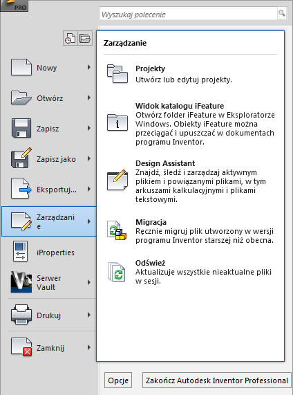 - Otwórz plik utworzony we wcześniejszej wersji programu Autodesk Inventor.