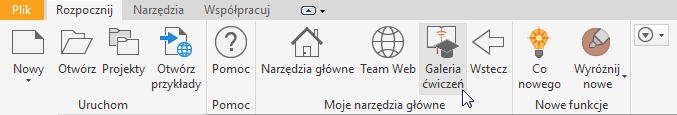 Dostęp do tych ćwiczeń można uzyskać, klikając galerię ćwiczeń na karcie Rozpocznij w panelu Moje narzędzia główne na wstążce.