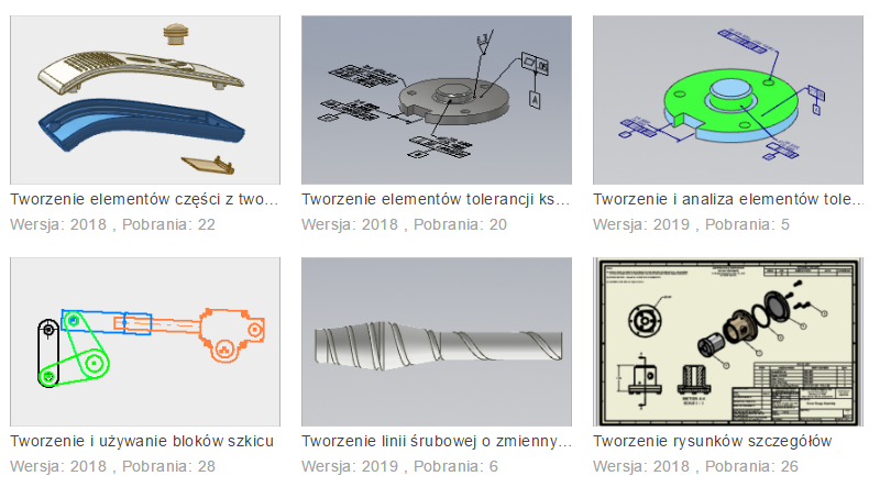 Ćwiczenia z edukacyjna to doskonały sposób na rozpoczęcie pracy. Ustaw filtr Typ na Szybki start, aby wyświetlić ćwiczenia wprowadzające w podstawy dotyczące szkicowania, modelowania części, tworzenia zespołów i dokumentowania projektu w rysunku.