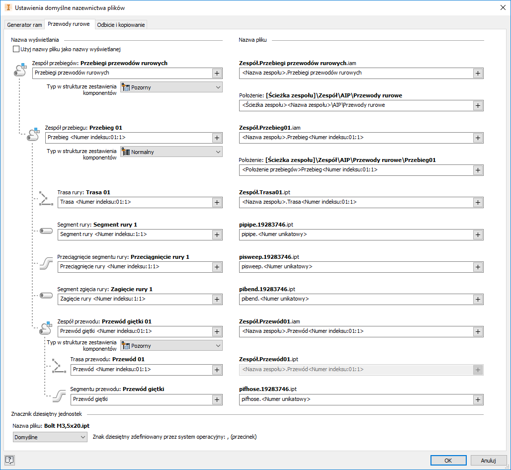 Ustawienia domyślne nazewnictwa plików zostało rozbudowane o nowe funkcje i zaktualizowane w celu zwiększenia produktywności.