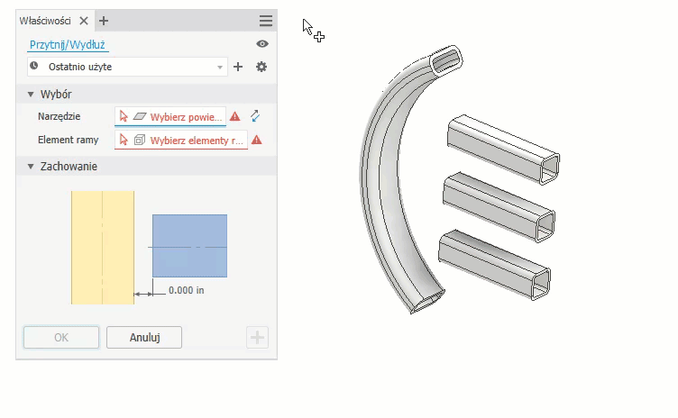 Polecenie Przytnij/Wydłuż obsługuje obecnie wybór zakrzywionej powierzchni w celu zdefiniowania narzędzia.