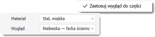 Opcja Zastosuj wygląd do części została dodana do menu Ustawienia zaawansowane dla poleceń Wstaw, Zmień, Użyj ponownie i Zmień ponowne użycie. Włącz nową opcję, aby części ramy miały ten sam kolor co zespół. Poprzednio części ramy nie używały koloru wyglądu zespołu.