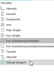 Na liście rozwijanej Kategorie dodano opcję Odśwież kategorie, która umożliwia przebudowanie listy w celu uwzględnienia niestandardowych wpisów biblioteki do odczytu/zapisu.