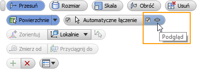 Do głównego minipaska narzędzi edycji bezpośredniej dla wszystkich operacji (Przesuń, Rozmiar, Skaluj, Obróć i Usuń) został dodany przycisk podglądu.