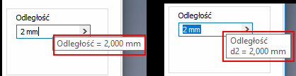 W polach wartości obecnie wyświetlana jest nazwa parametru w etykiecie narzędzi. Po umieszczeniu kursora na parametrze zostanie wyświetlona nazwa wraz z wartością.