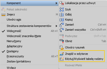 Znajdź w Edytorze: Okno dialogowe Edytor Content Center otwierane jest w położeniu części w bibliotece Content Center.