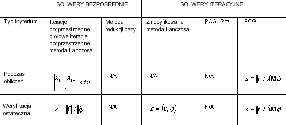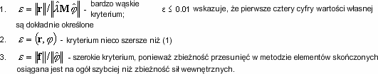 Stosowane są trzy różne kryteria szacowania błędów obliczeniowych dla wektorów własnych: