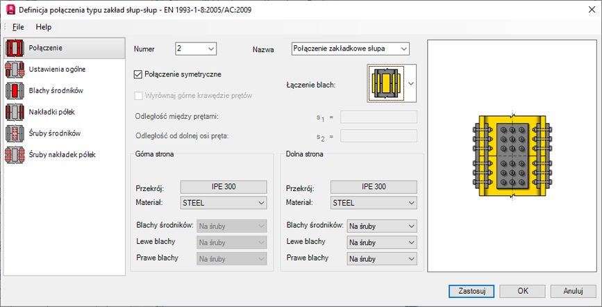 - Określ, czy nakładki środników mają być mocowane za pomocą śrub czy spawane.