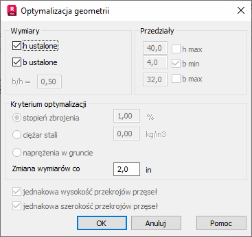 Dostępne są dwa kryteria optymalizacji geometrii belki: