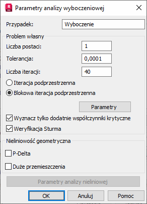Użyj tego okna dialogowego, aby zdefiniować parametry analizy wyboczeniowej dla przypadku obciążenia.