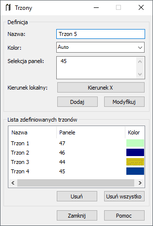 Aby określić panele, z których zbudowanych będzie zdefiniowany trzon, należy zastosować się do następujących instrukcji: