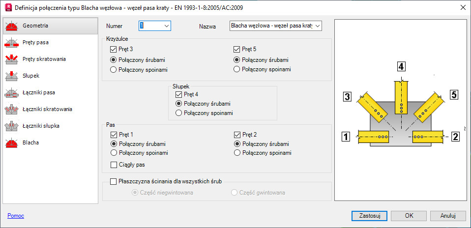 sposobu połączenia poszczególnych prętów z blachą węzłową (połączenie na śruby, połączenie spawane).