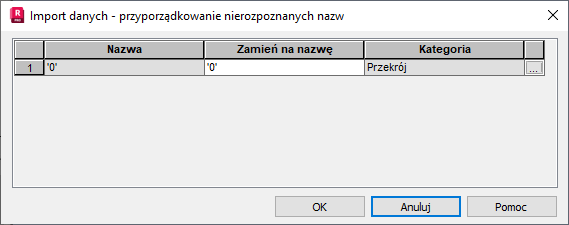 - w kolumnie Kategoria — podawany jest obiekt, dla którego nazwa nie została rozpoznana (materiał, przekrój).