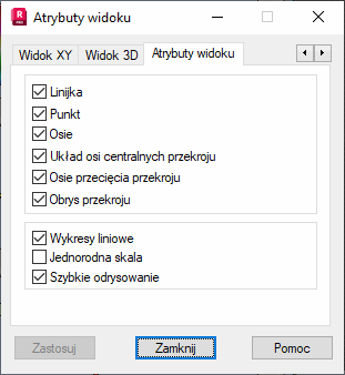 Na karcie Atrybuty widoku moża wybrać elementy, które mają być wyświetlane na ekranie.