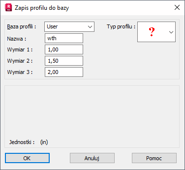 Jednostki podawane w dolnej części okna dialogowego dotyczą typu przekroju (podawane są w bieżących jednostkach wymiarów przekroju).