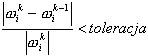 Kryterium zbieżności: iteracje zostaną zakończone, jeżeli spełniony zostanie warunek: