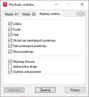 W oknie Atrybuty widoku można wybrać elementy, które prezentowane będą dla przekroju cienkościennego.