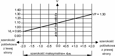Zdefiniowane zostały wartości współczynników VP=1.3 i VL=0.9; dla tego przykładu maksymalna szerokość = max ( 3+1; 0+1) = 4 m