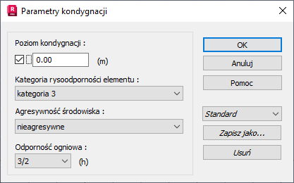 Opcja Usuń umożliwia usunięcie wybranego zestawu parametrów kondygnacji.