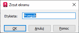 Opcja służy do zapisania stanu aktualnego wykresu w celu wykorzystania go podczas tworzenia dokumentacji projektu. Opcja dostępna jest z menu skrótów poprzez wybranie polecenia: Zrzut ekranu. Menu skrótów jest dostępne po naciśnięciu prawego przycisku myszy w chwili, gdy kursor znajduje się w polu prezentowanego w górnej części okna dialogowego wykresu.