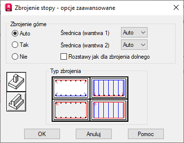 W przypadku wybrania opcji Auto program automatycznie określa, czy zbrojenie górne jest konieczne.