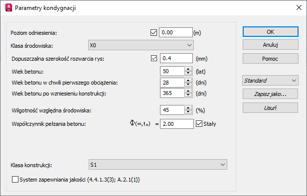 - Klasa środowiska — parametr używany do sprawdzania wymaganej otuliny.