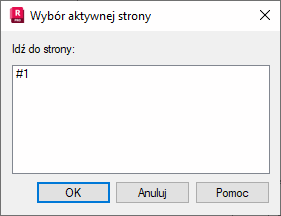 Okno dialogowe Wybór aktywnej strony służy do określenia, która strona będzie prezentowana na ekranie. Okno to może być wywołane na ekranie po wybraniu polecenia Widok / Idź do. Na ekranie pojawia się okno dialogowe Wybór aktywnej strony.