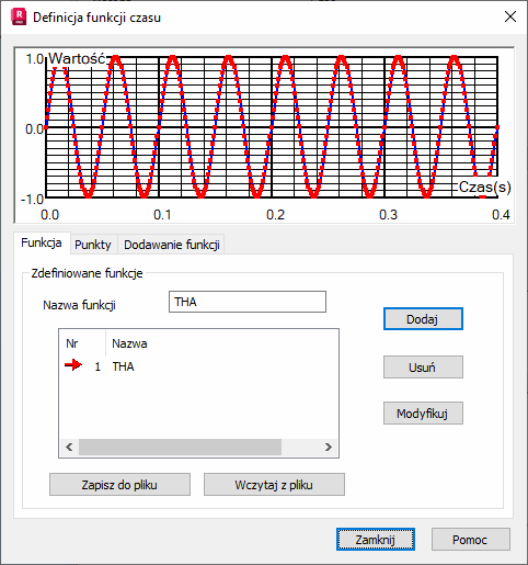To okno dialogowe zawiera trzy karty: Funkcja, Punkty i Dodaj funkcje.